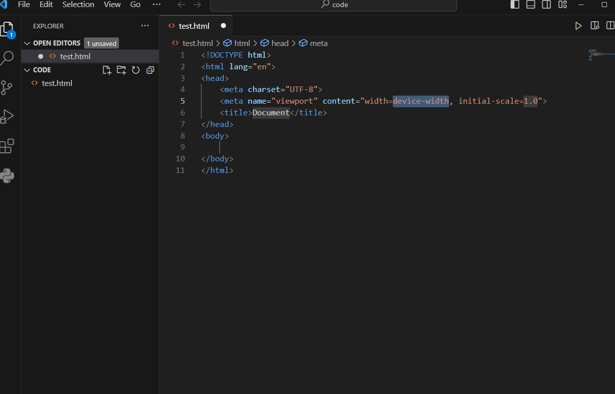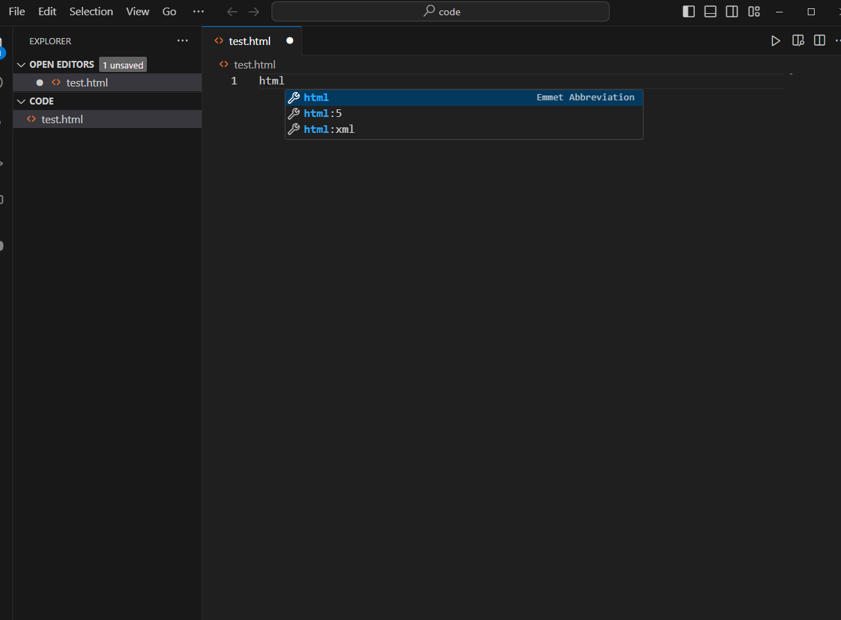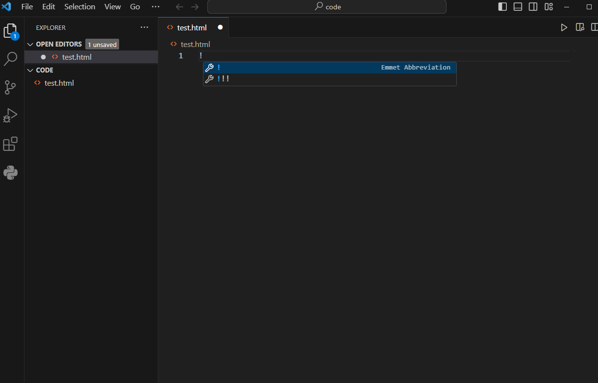 'html : 5'를 선택하거나 '!' 입력후 선택