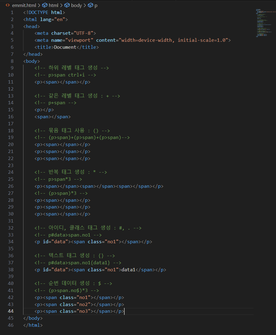 Emmet 사용해보기. 매우 편리하다. Ctrl + i로 실행가능.
