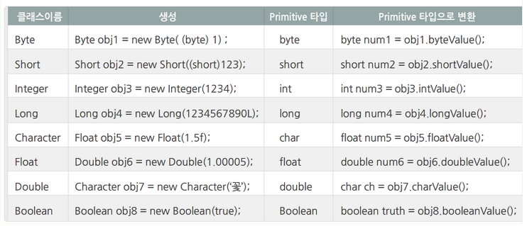 이런 경우 기본형을 객체로 다루기 위해 사용하는 클래스들을 래퍼 클래스(wrapper class)라고 한다.