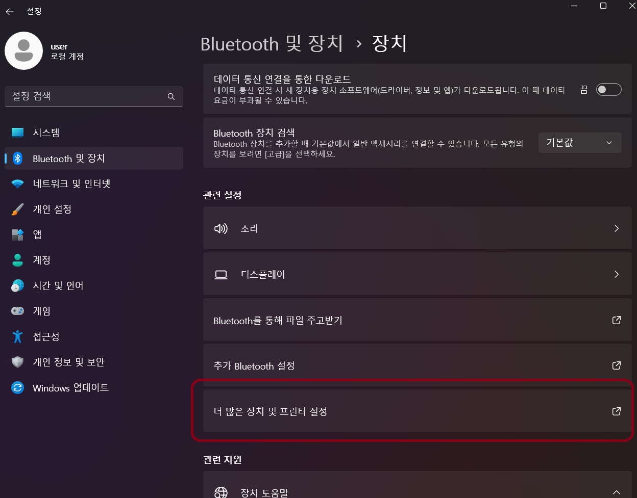 '더 많은 장치 및 프린터 설정'에 들어간다.